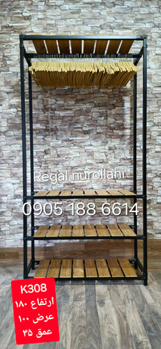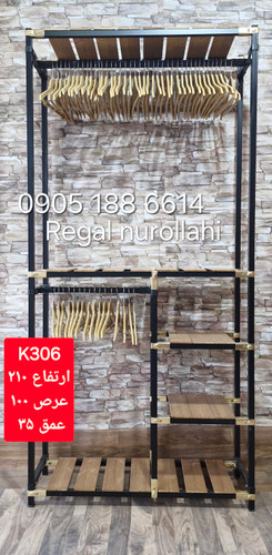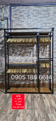 رگال لباس چهار آویز مشکی فلزی با جای پرده مدل k218